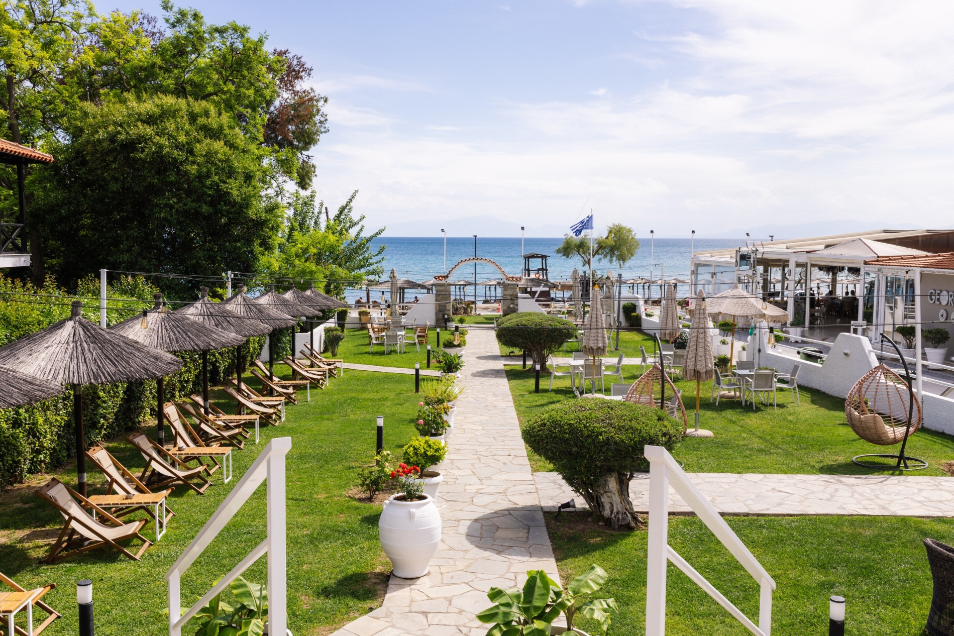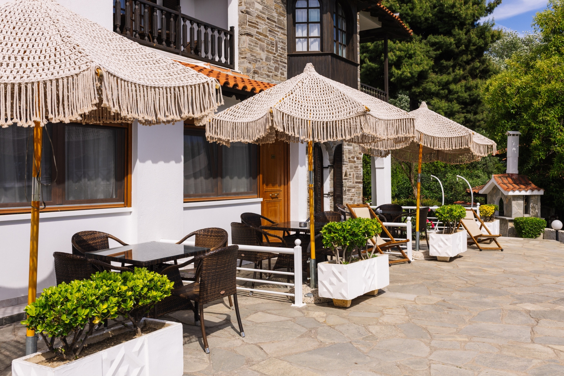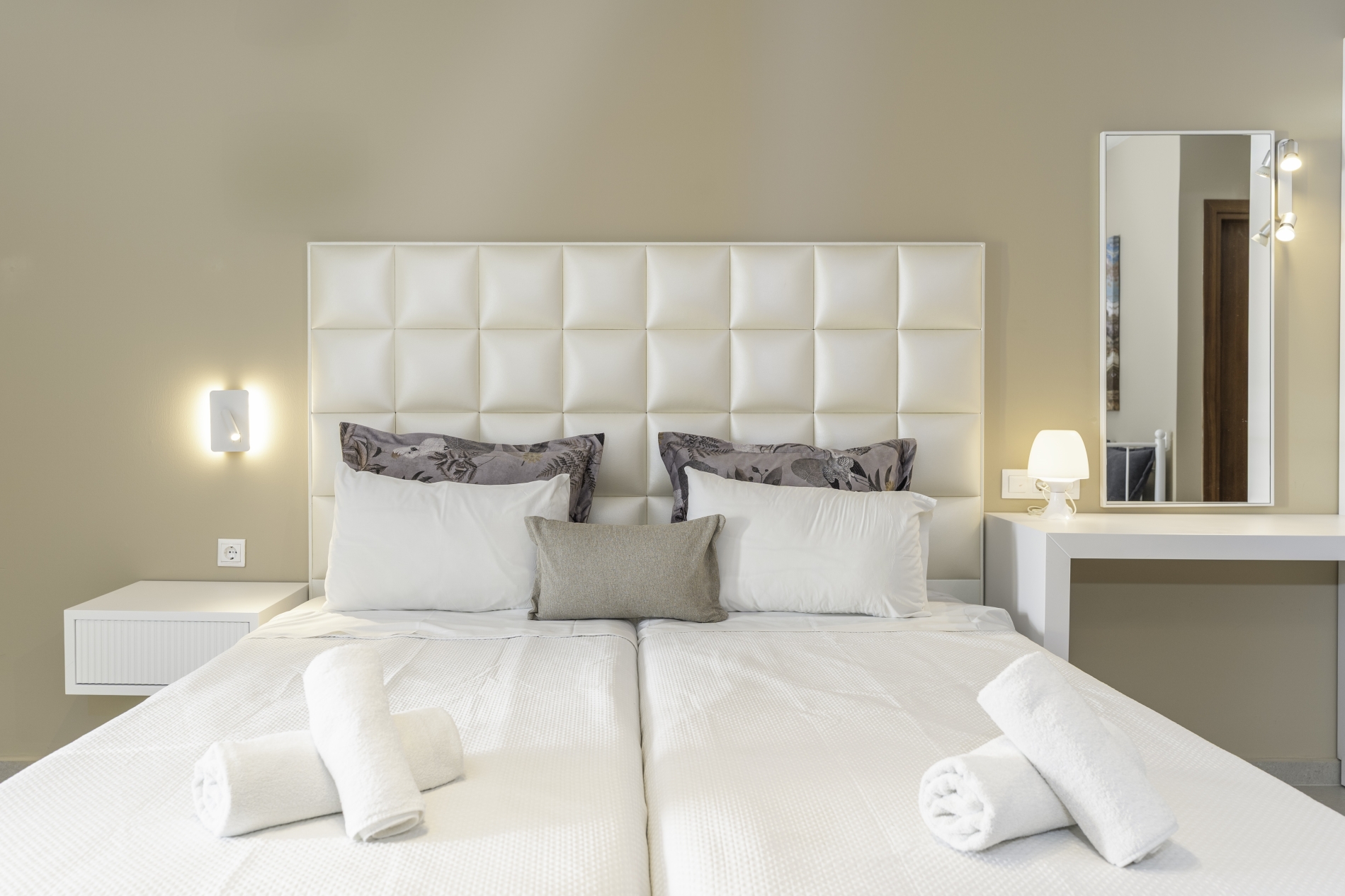 Our air conditioned approximately 27 m2 comfort triple room offers a modern design two beds and one sofa bed or a double bed and a sofa bed. The bathroom features a shower and complimentary toiletries, as well as a private balcony with coffee table and chairs. Comfort Triple rooms accommodate up to three adults.Non smoking rooms located in the Villa building, offer to the visitor an amphitheatrical aspect of the resort, the garden and the Aegean sea.